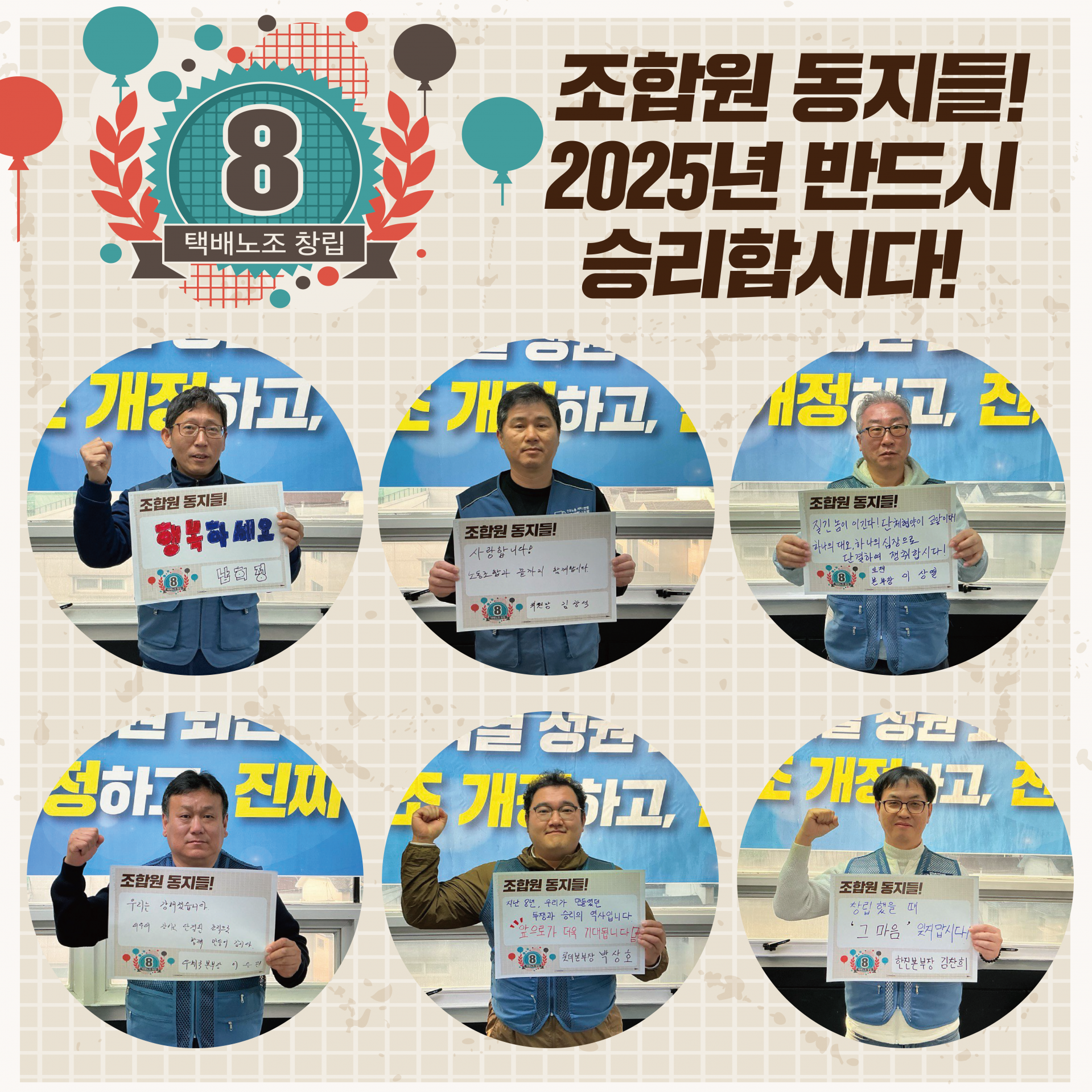 조합원 동지들, 오늘 1월 8일은 전국택배노동조합이 창립한지 8년째 되는 날입니다.